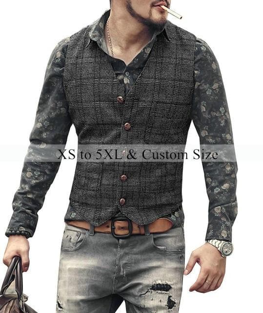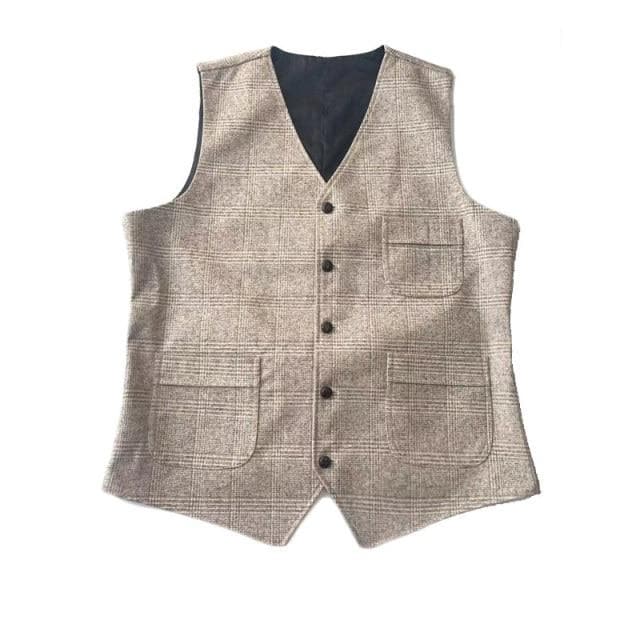 Dark Academia Brown Plaid Old Time Slim Fitted Gilet V-Neck Vest DK076 CN(Origin)