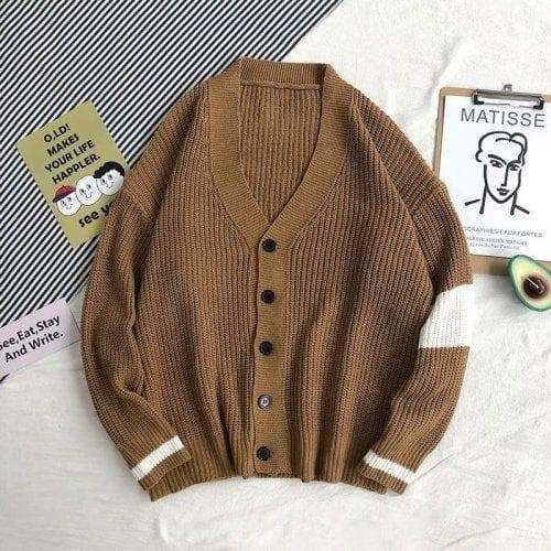 Dark Academia Men's Cardigan Knitted Sweater Patchwork DK057 China
