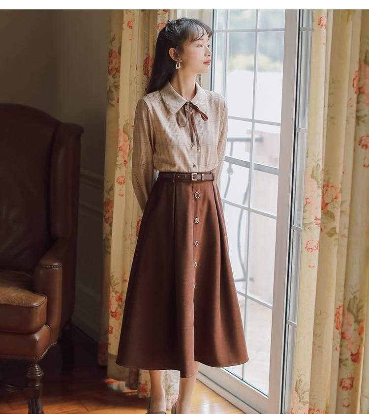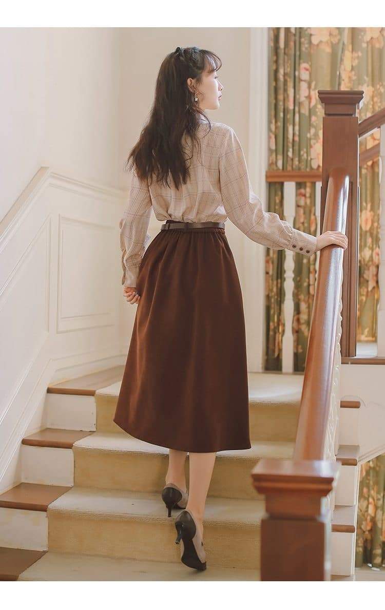 Dark Academia Sweet Winter Elastic Waist Skirt With Belt DK069 CN(Origin)
