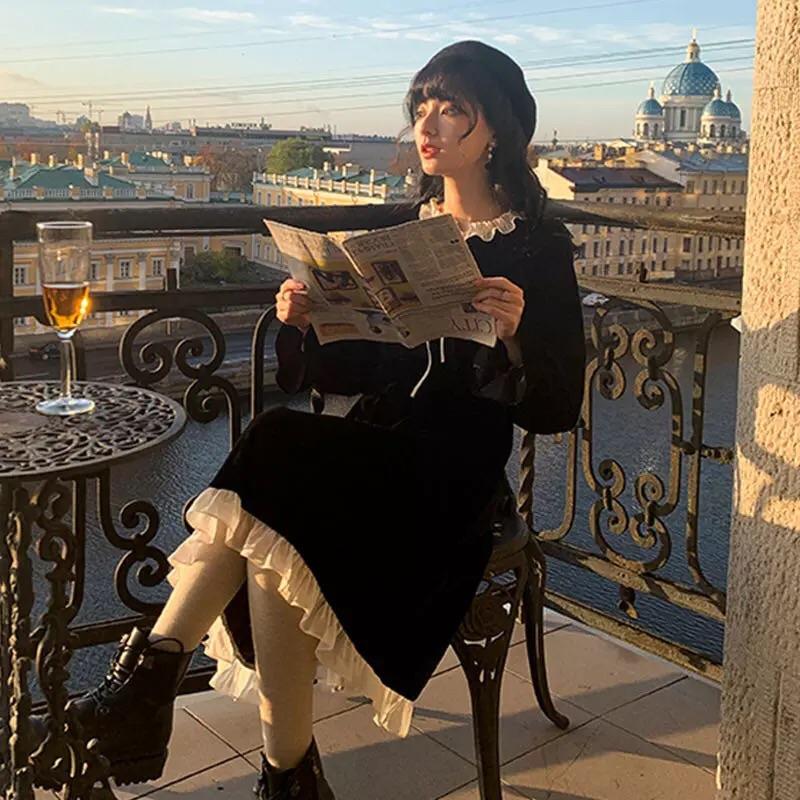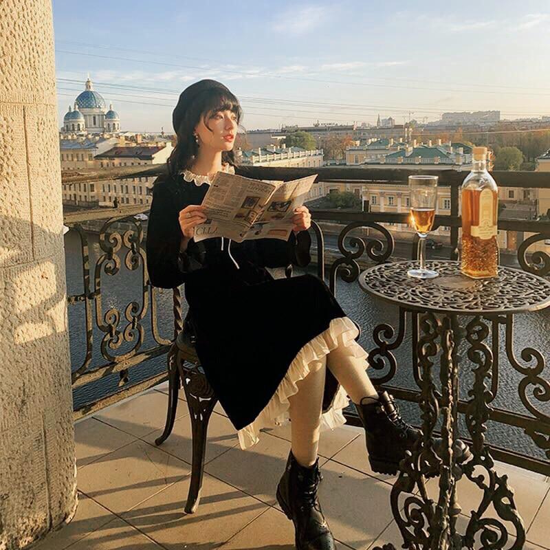 Dark Romantic Vintage Aesthetic Victorian Gothic Velvet Dress