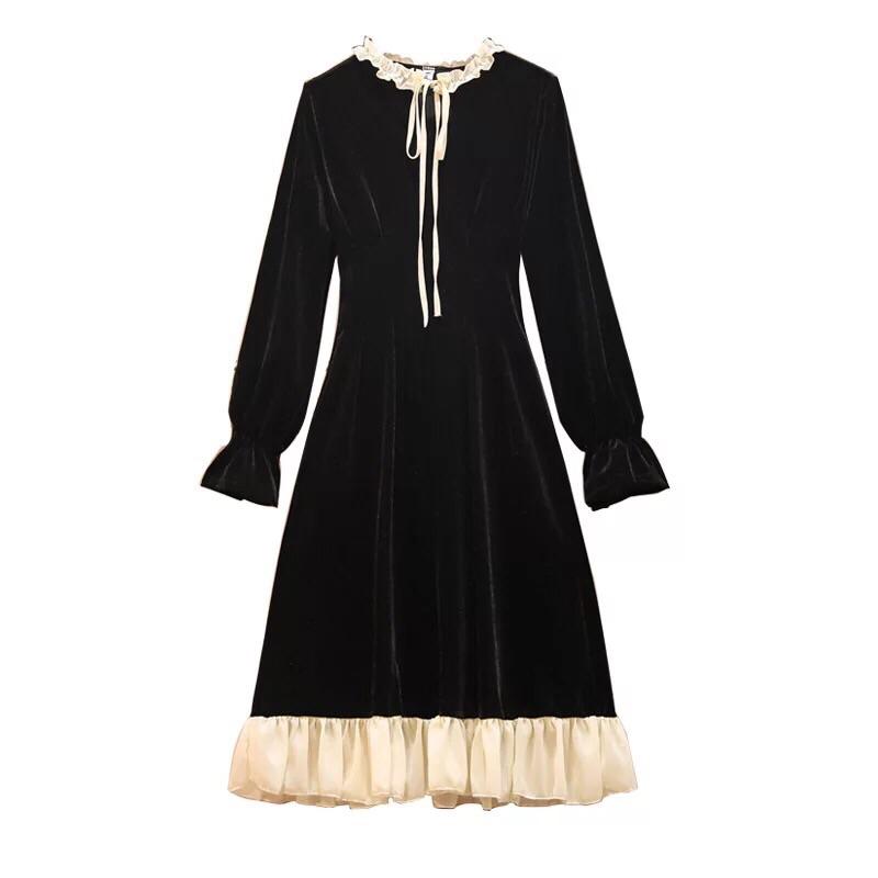 Darla Dark Romantic Vintage Aesthetic Victorian Gothic Velvet Dress DK1002