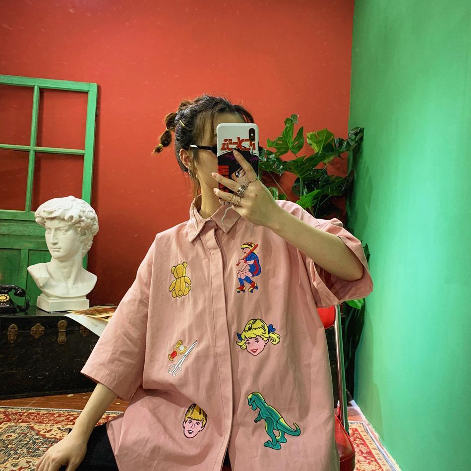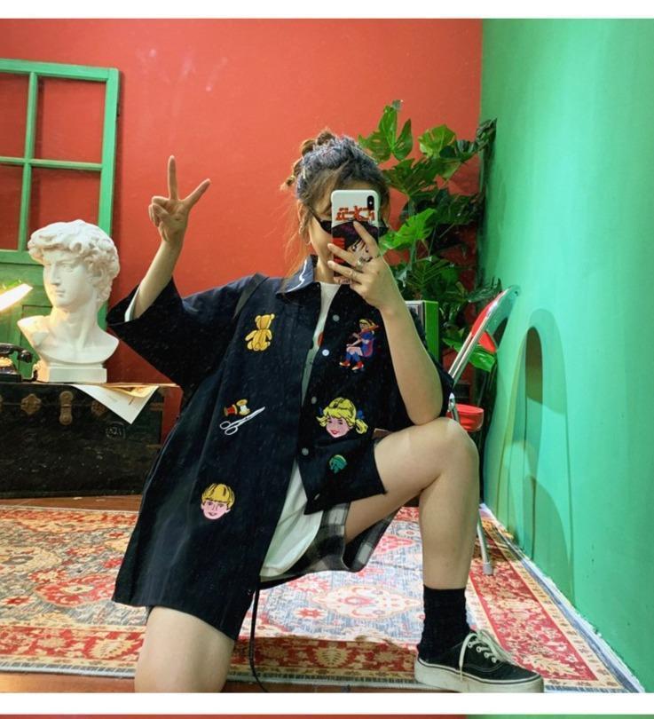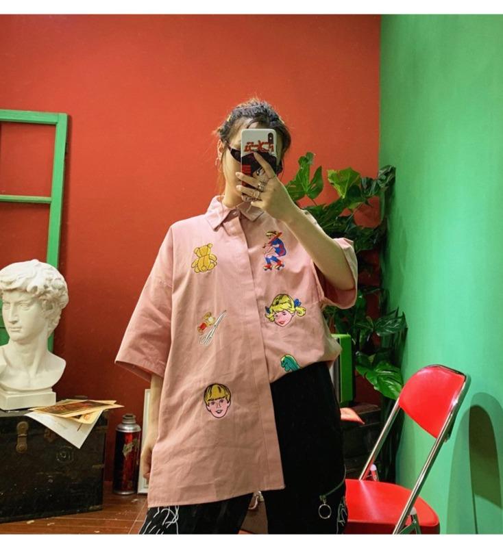 Korean Fashion Cartoon Embroidery Lapel Shirt TK140 · SpreePicky · Online Store Powered by Storenvy
