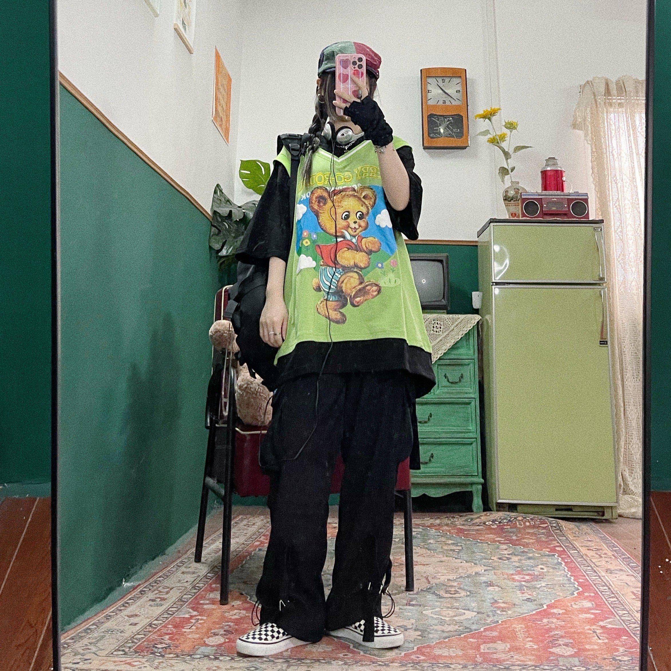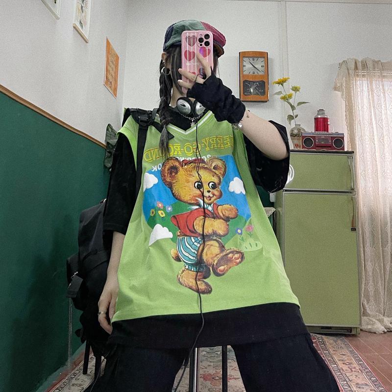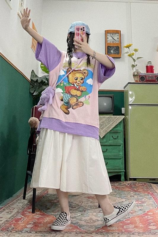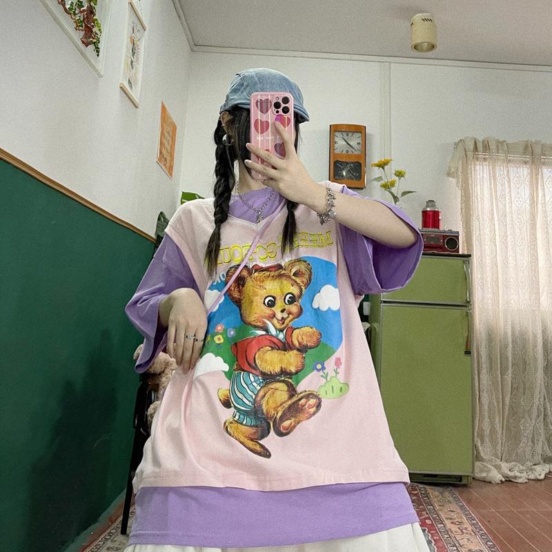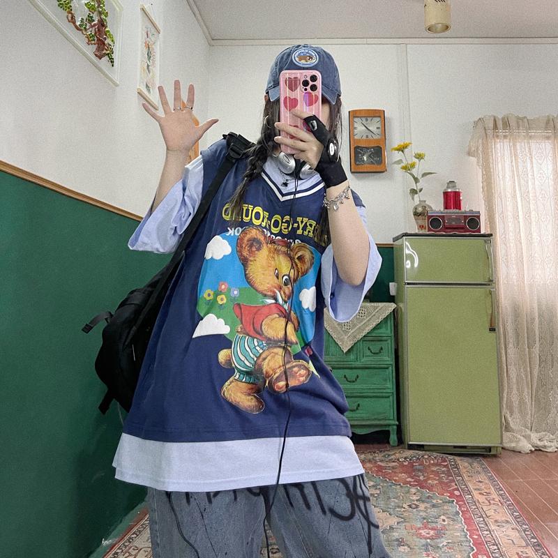 Korean Fashion Fake Two-piece Bear Printed T-shirt TK037 · SpreePicky · Online Store Powered by Storenvy