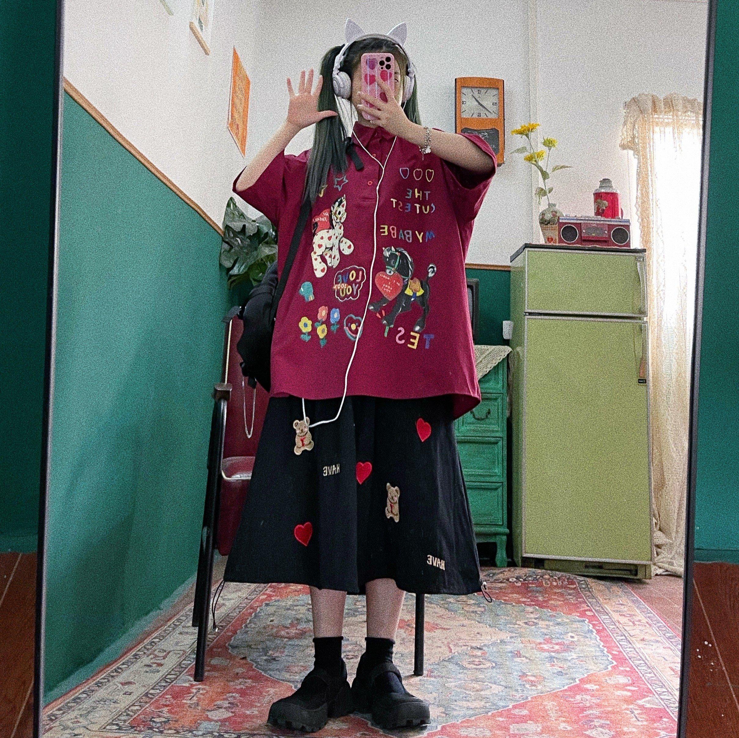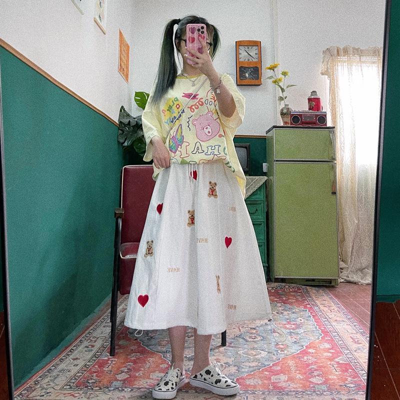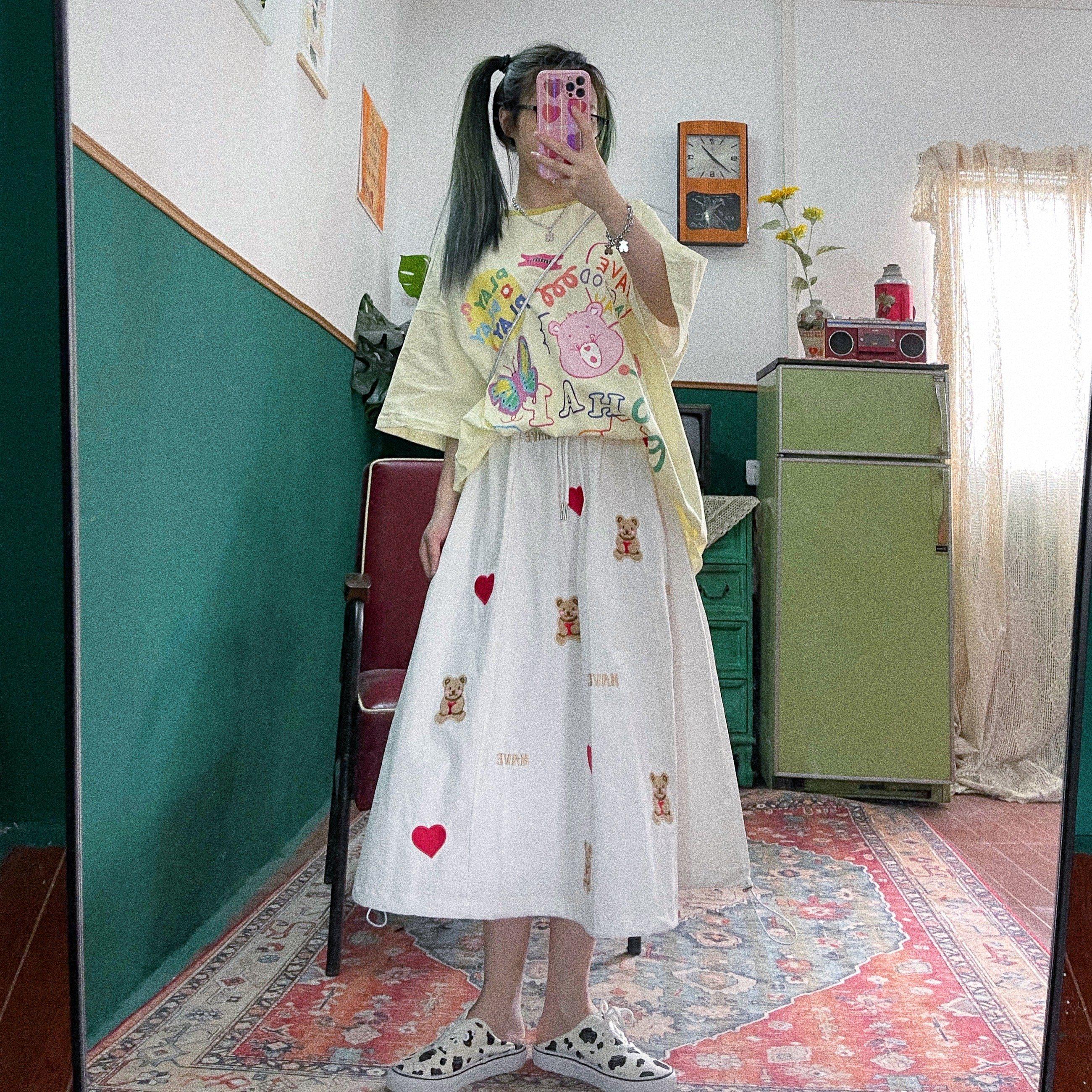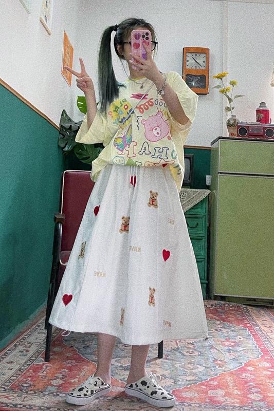 Korean Fashion Retro Bear Embroidery Skirt TK171 · SpreePicky · Online Store Powered by Storenvy