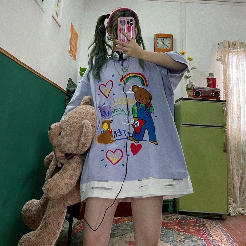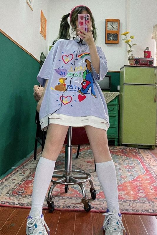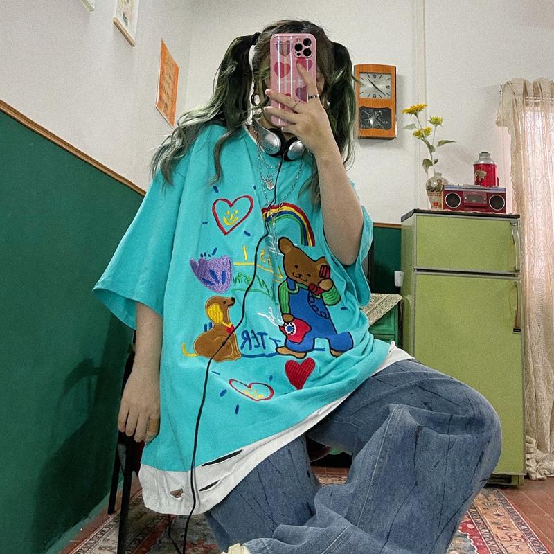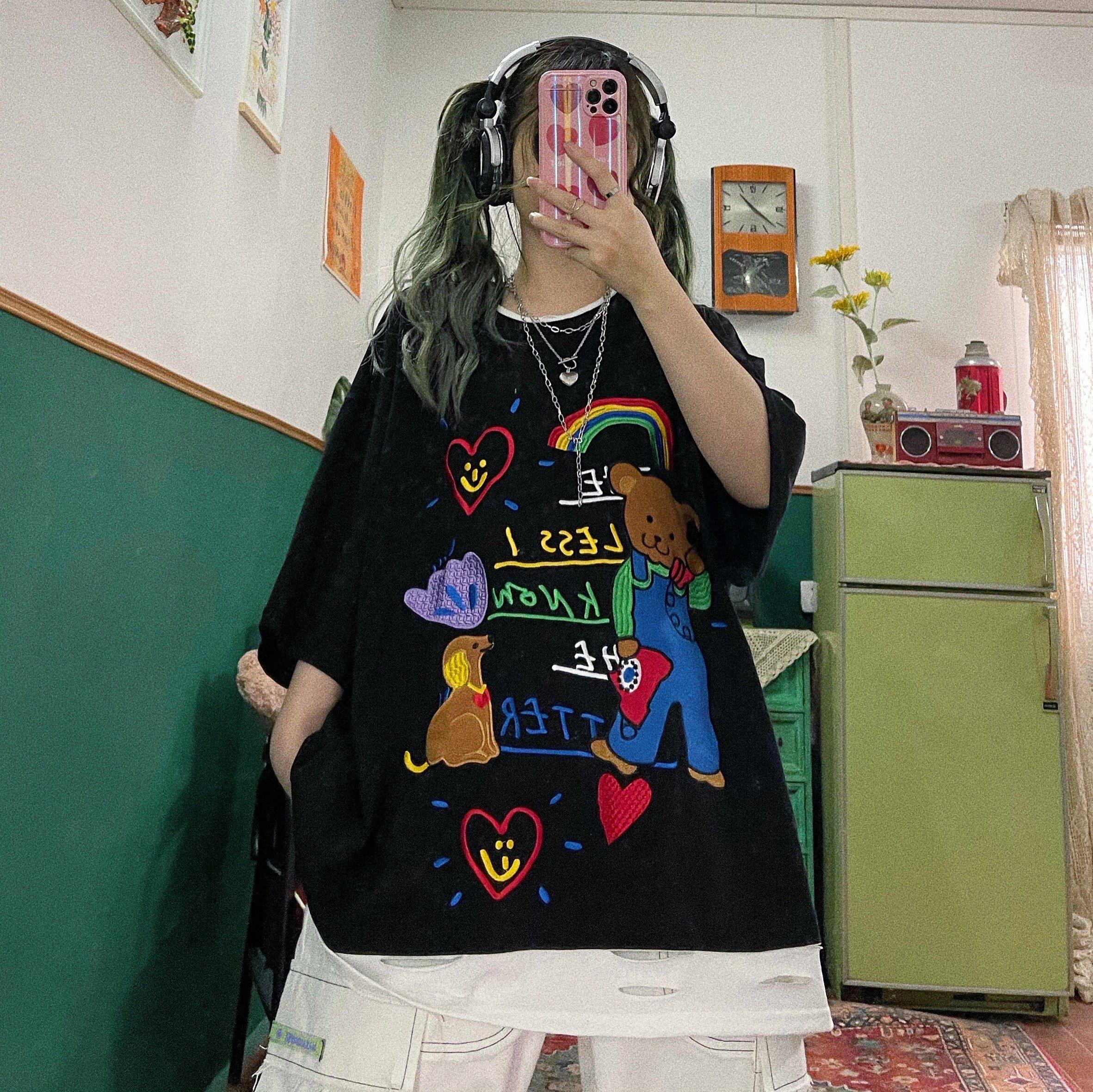Korean Fashion Cartoon Embroidered T-shirt TK163 · SpreePicky · Online Store Powered by Storenvy