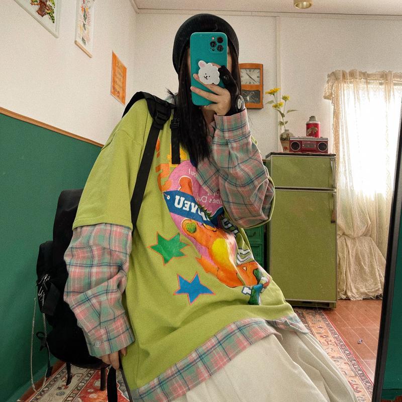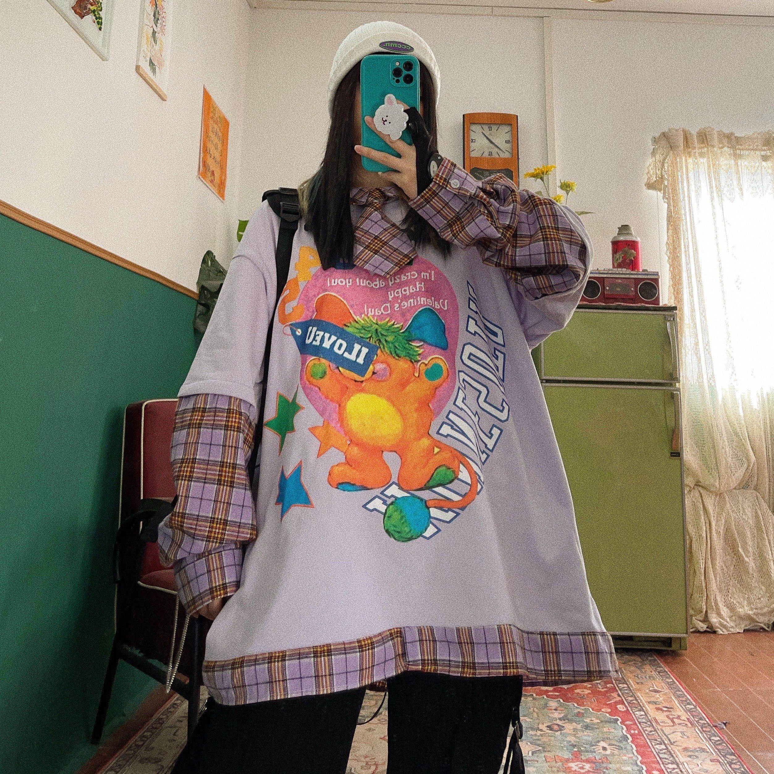 Korean Fashion Plaid Cartoon Print T-Shirt TK152 · SpreePicky · Online Store Powered by Storenvy
