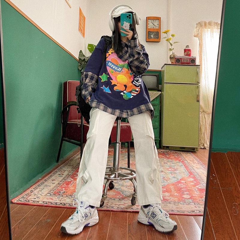 Korean Fashion Plaid Cartoon Print T-Shirt TK152
