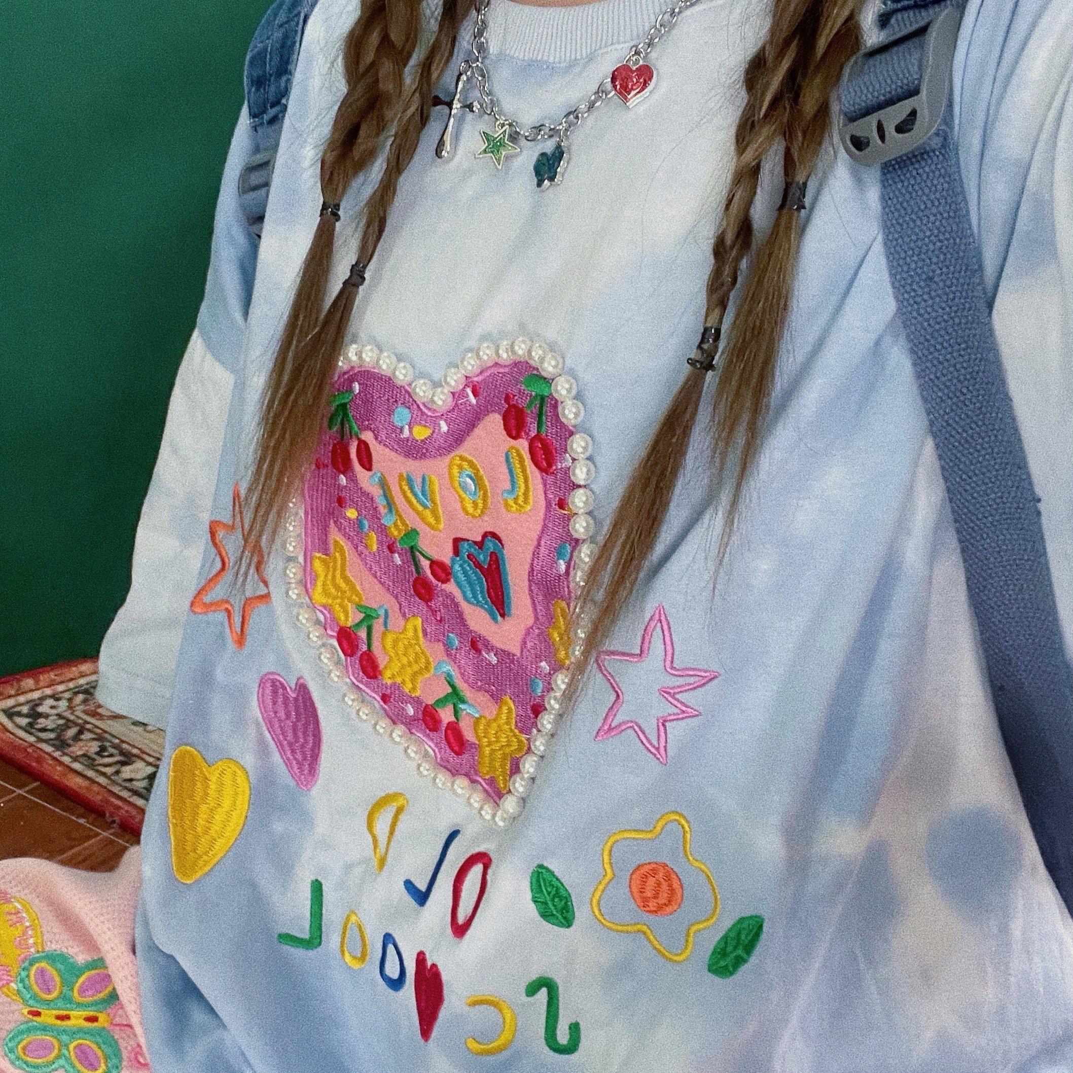 Korean Fashion Love embroidery T-shirt TK190 · SpreePicky · Online Store Powered by Storenvy