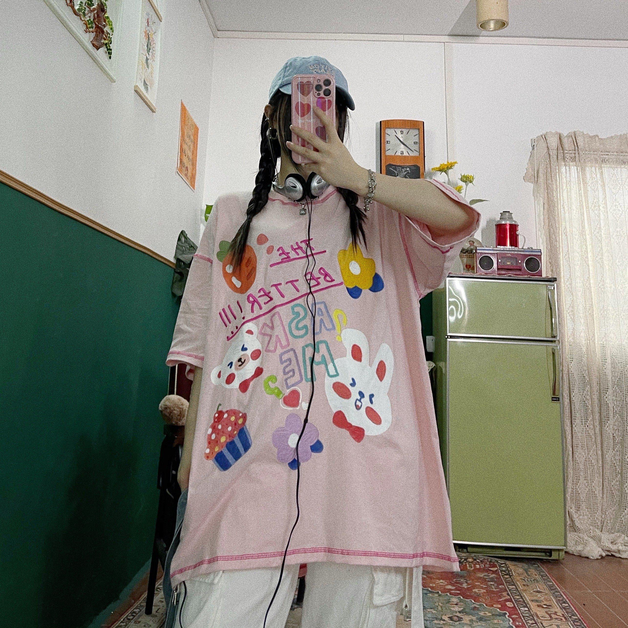 Korean Fashion Loose Short-sleeved T-shirt TK199 · SpreePicky · Online Store Powered by Storenvy