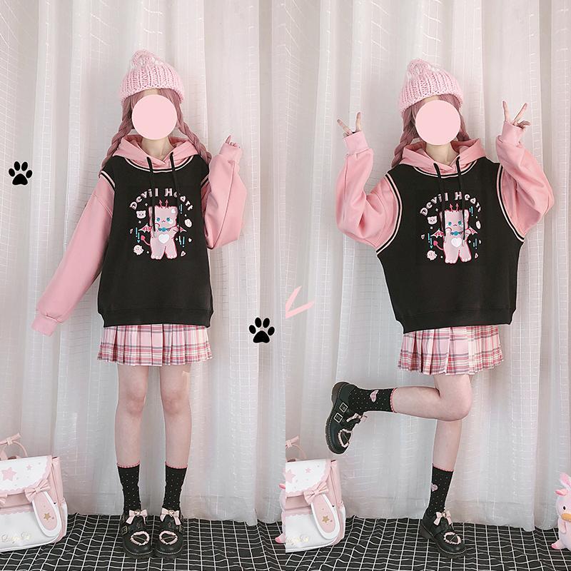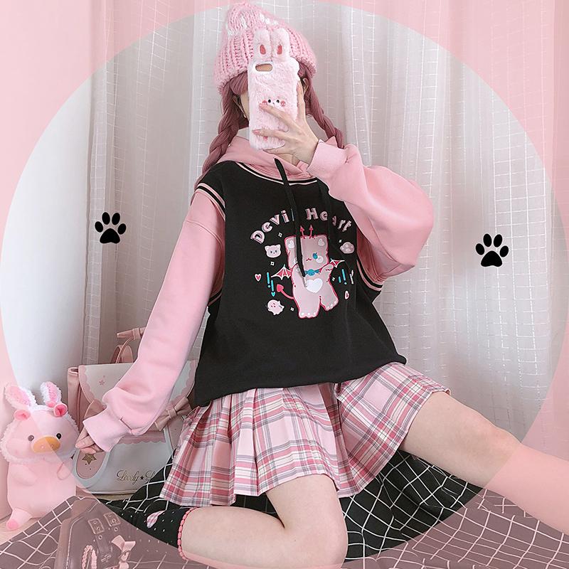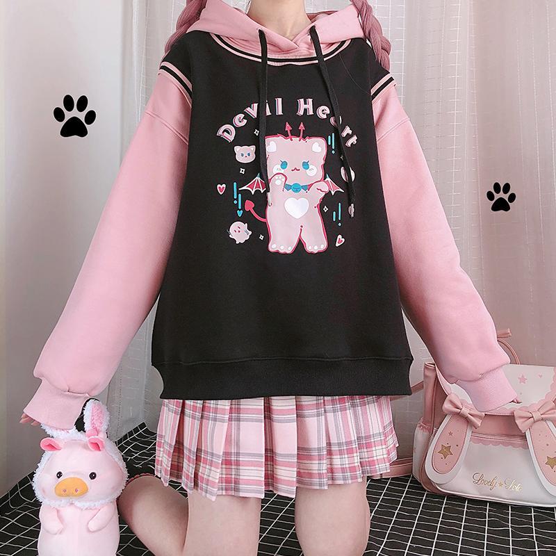 Kawaii Devil Heart Pink Bear Pastel Black Sweater SP16306 · SpreePicky · Online Store Powered by Storenvy