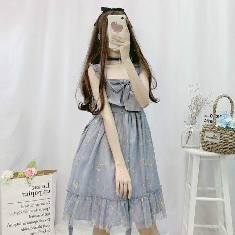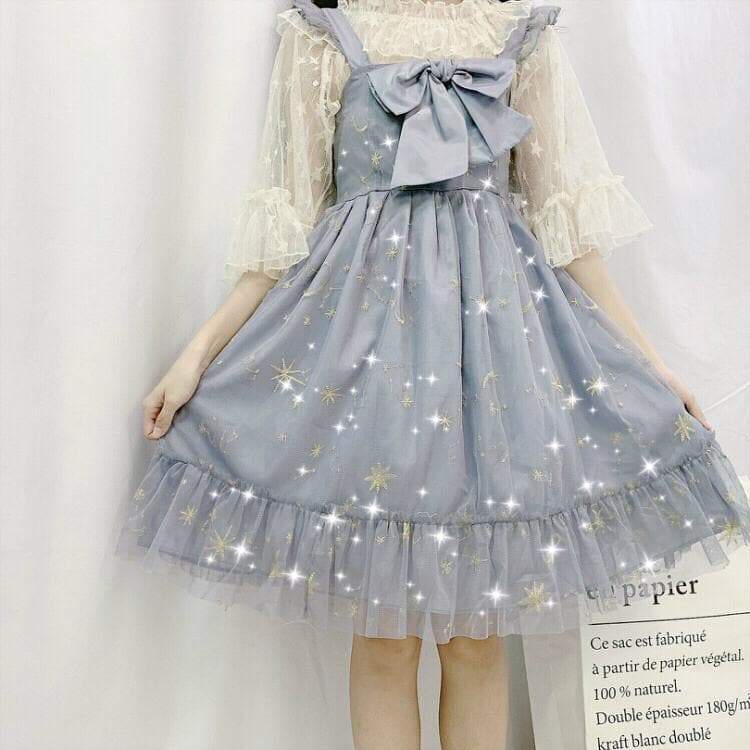 Gray/Beige Cute Galaxy Bowknot Soft Lolita Dress SS1648 · SpreePicky · Online Store Powered by Storenvy