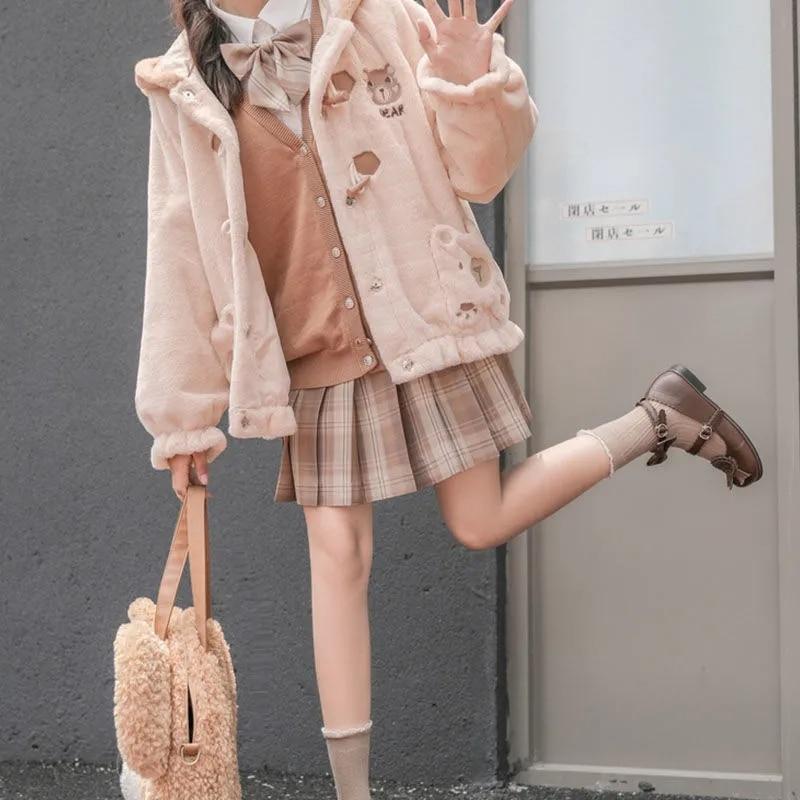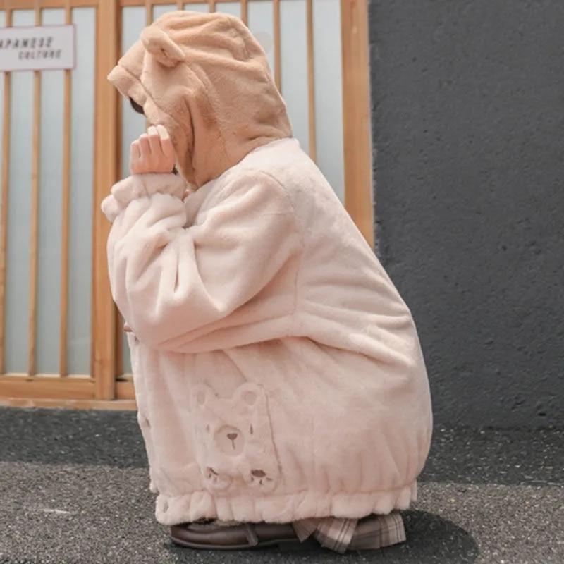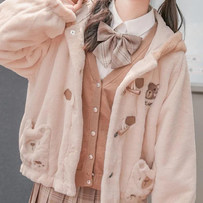 Kawaii Plush Fluffy Bear Winter Hoodie Jacket SS2145