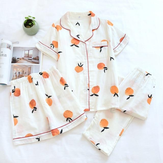 Japanese Cotton Summer Short Sleeve Pajamas Set BE014