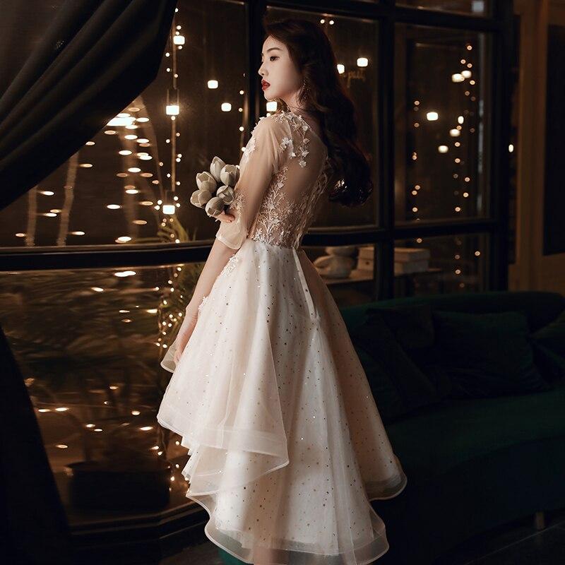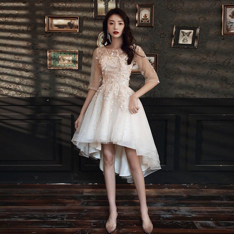 Party Dresses Elegant O-neck Appliques Short Front Long Back Prom Dresses SS1833