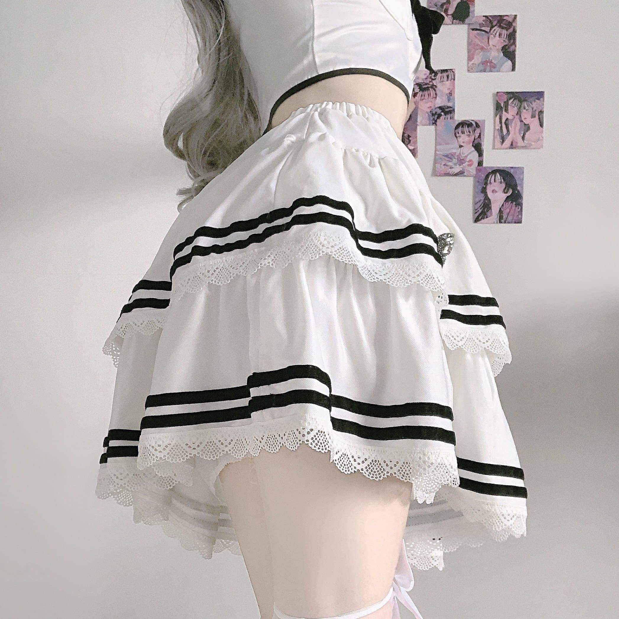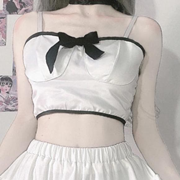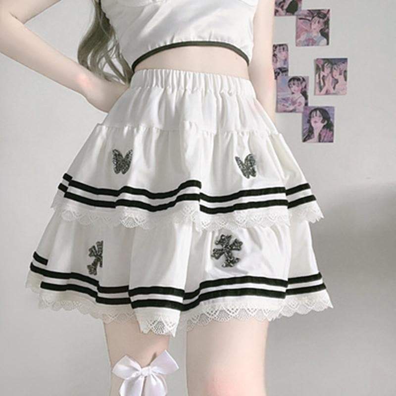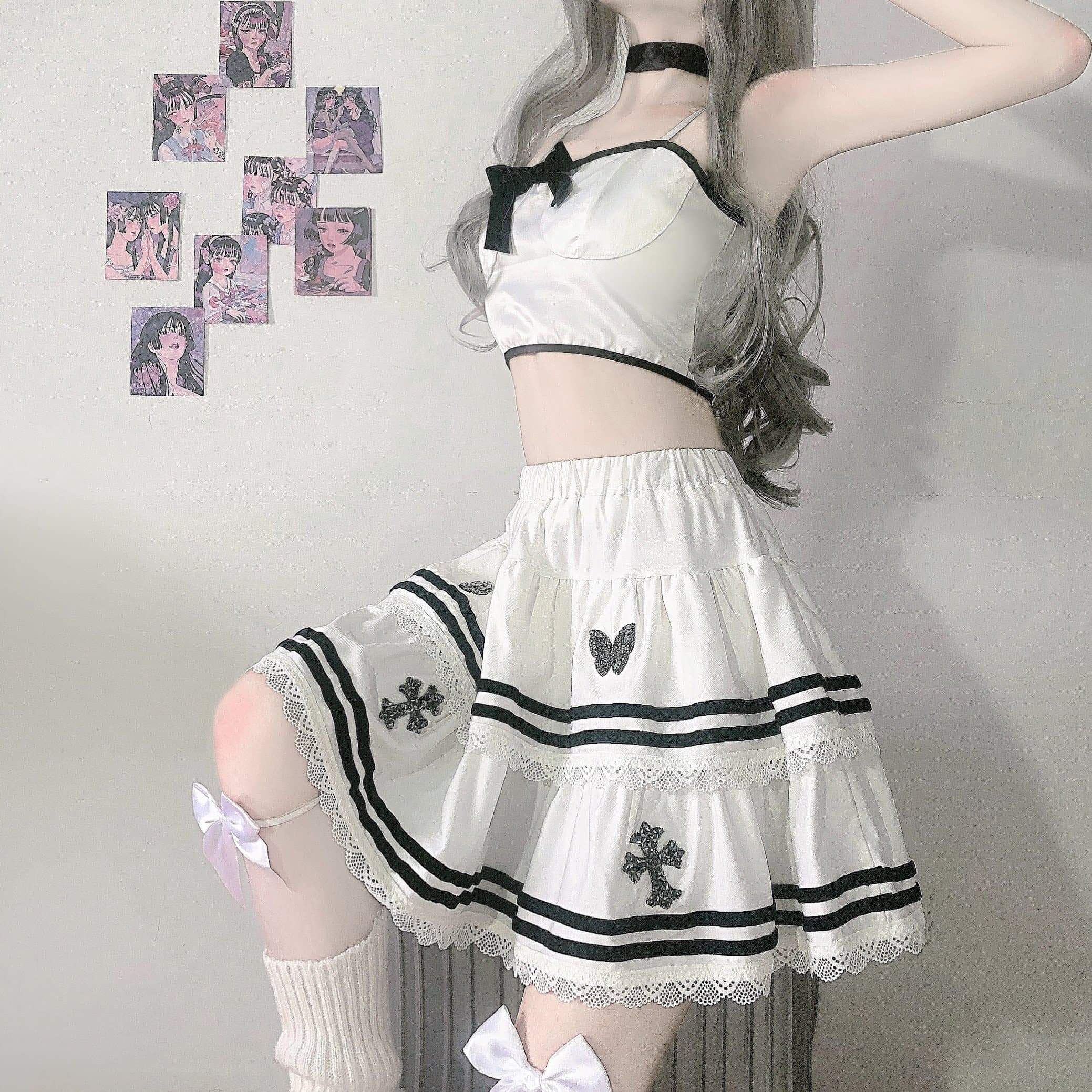 Kawaii Soft Girl Black Bow White Top Cross Butterfly Skirt Set SP16014 · SpreePicky · Online Store Powered by Storenvy