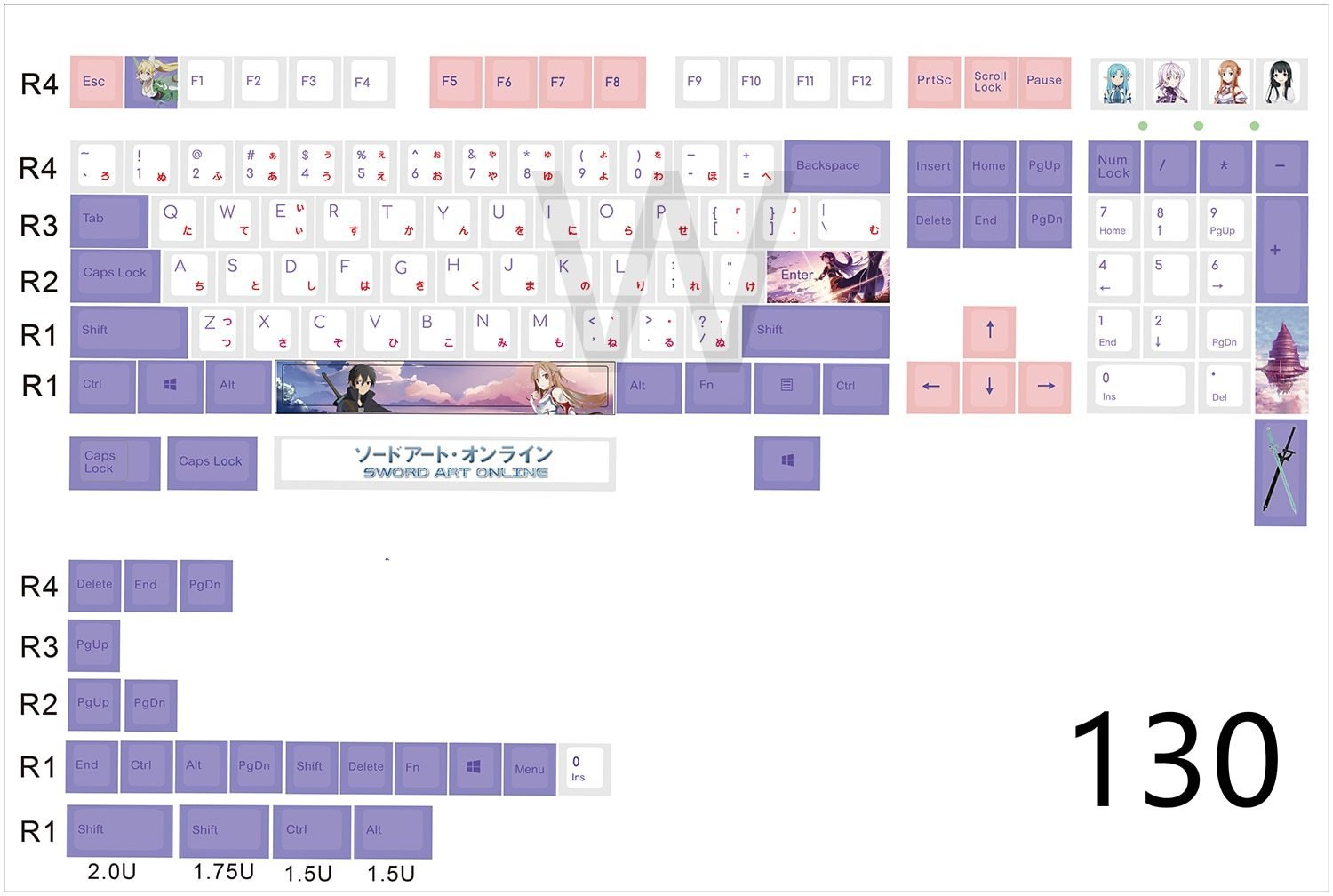 108/130 keys PBT dye sublimation keycap for MX switch mechanical keyboard Cherry profile keycaps for sword art online