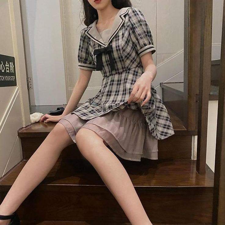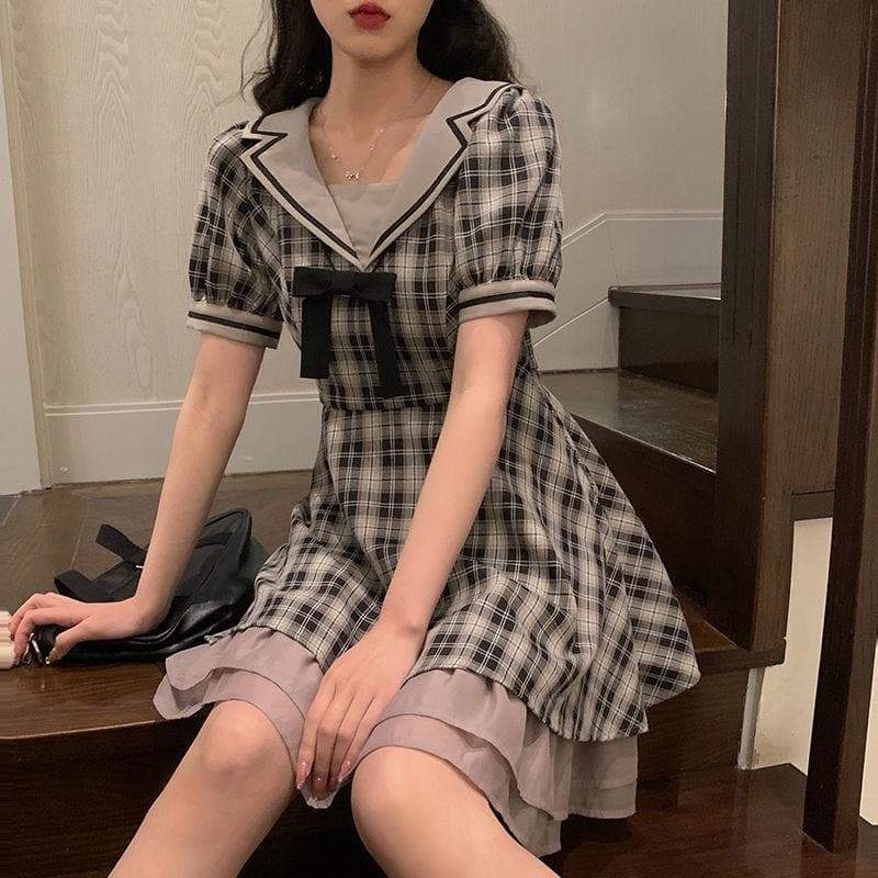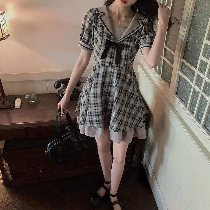 Cute Sailor Collar Plaid Gray Summer Dress SP16004 · SpreePicky · Online Store Powered by Storenvy