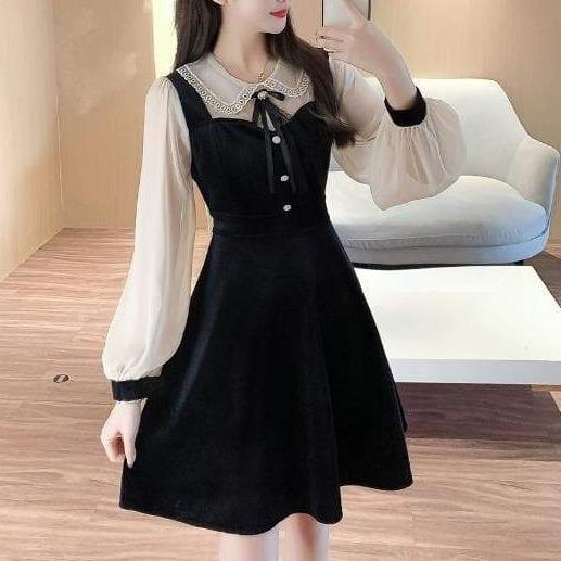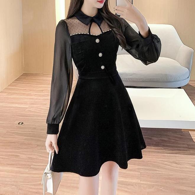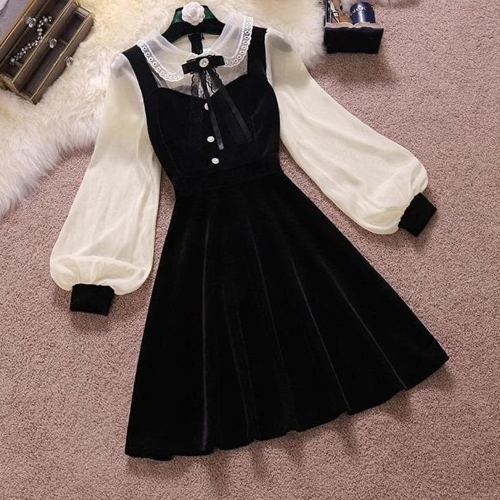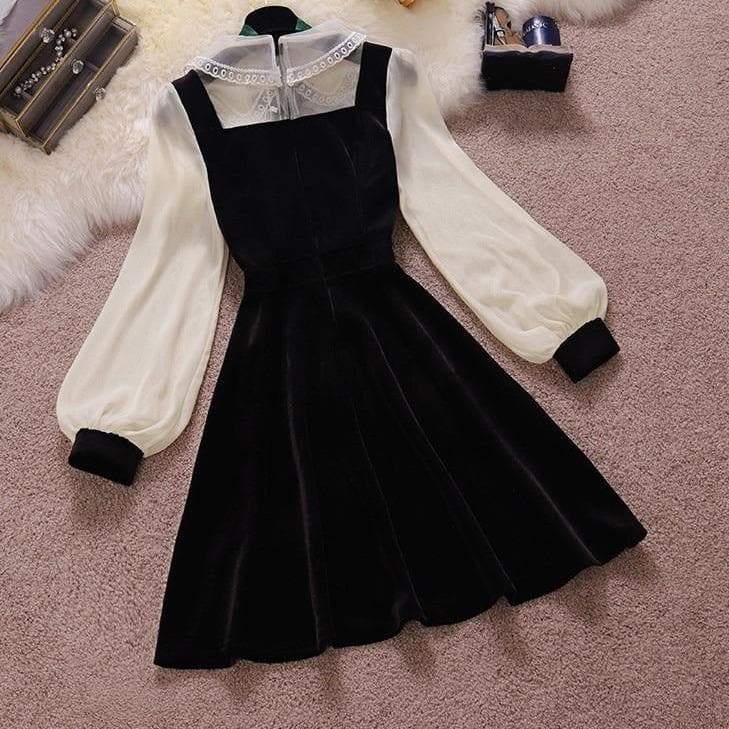 Elegant Vintage Black Lantern Sleeve High Waist Slim Dress SP16136