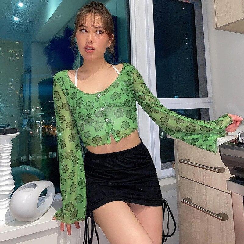 Vintage aesthetic floral crop top is a fun piece that you can not use in any combination. Although it has indie aesthetic spirit. this vintage effect product is a candidate to take place in the favorite part of your closet!