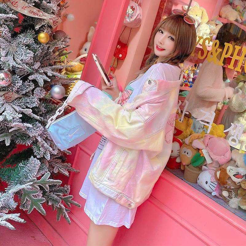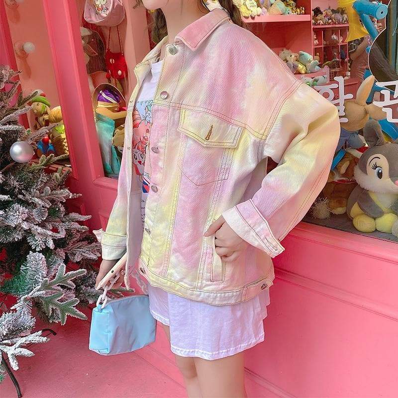Lovely Kawaii Tie Dye Gradiente Pastel Rainbow Denim Jacket SS1943