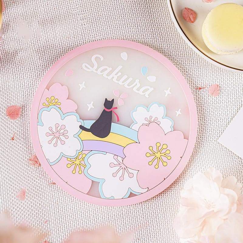 Kawaii Pastel Sakura Black Cat Coaster SS1765 · SpreePicky · Online Store Powered by Storenvy