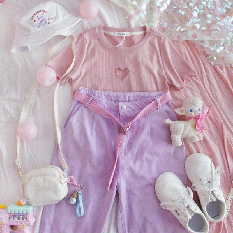 Kawaii Pink Hollow Out Heart T-shirt SS1806